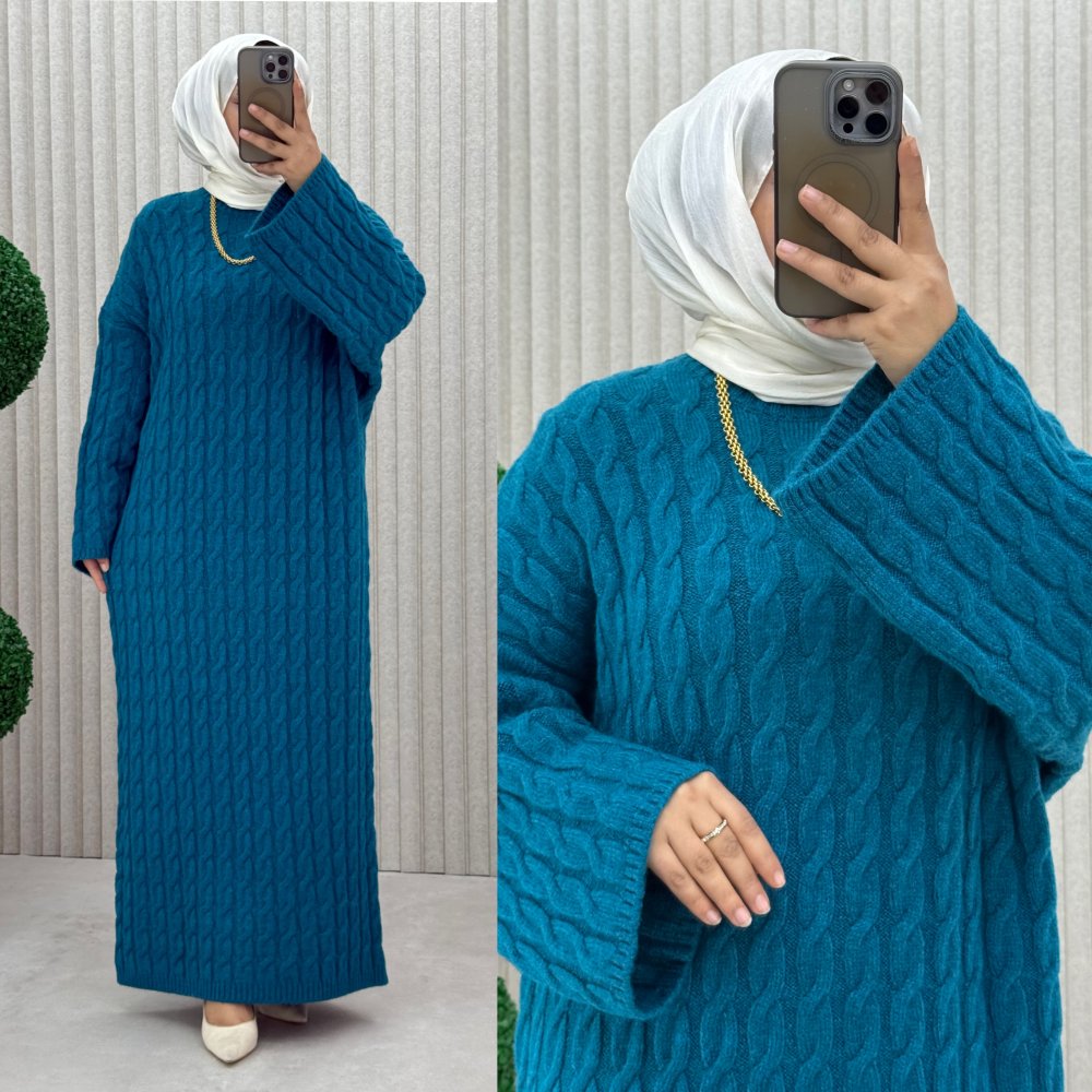 4072 Örgü Triko Elbise İndigo