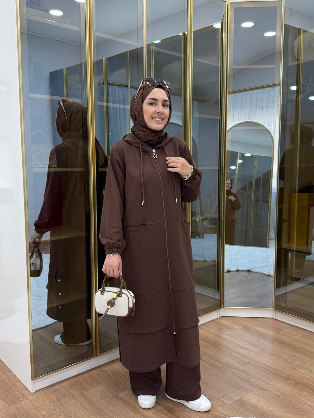 Aller Detaylı Kapüşonlu İkili Takım Kahverengi