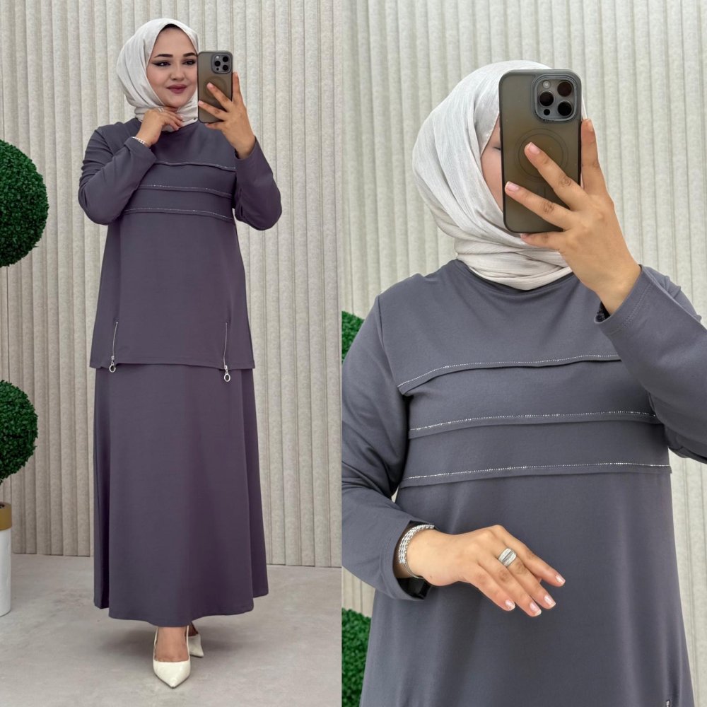 Aşkım Etekli Takım Gri