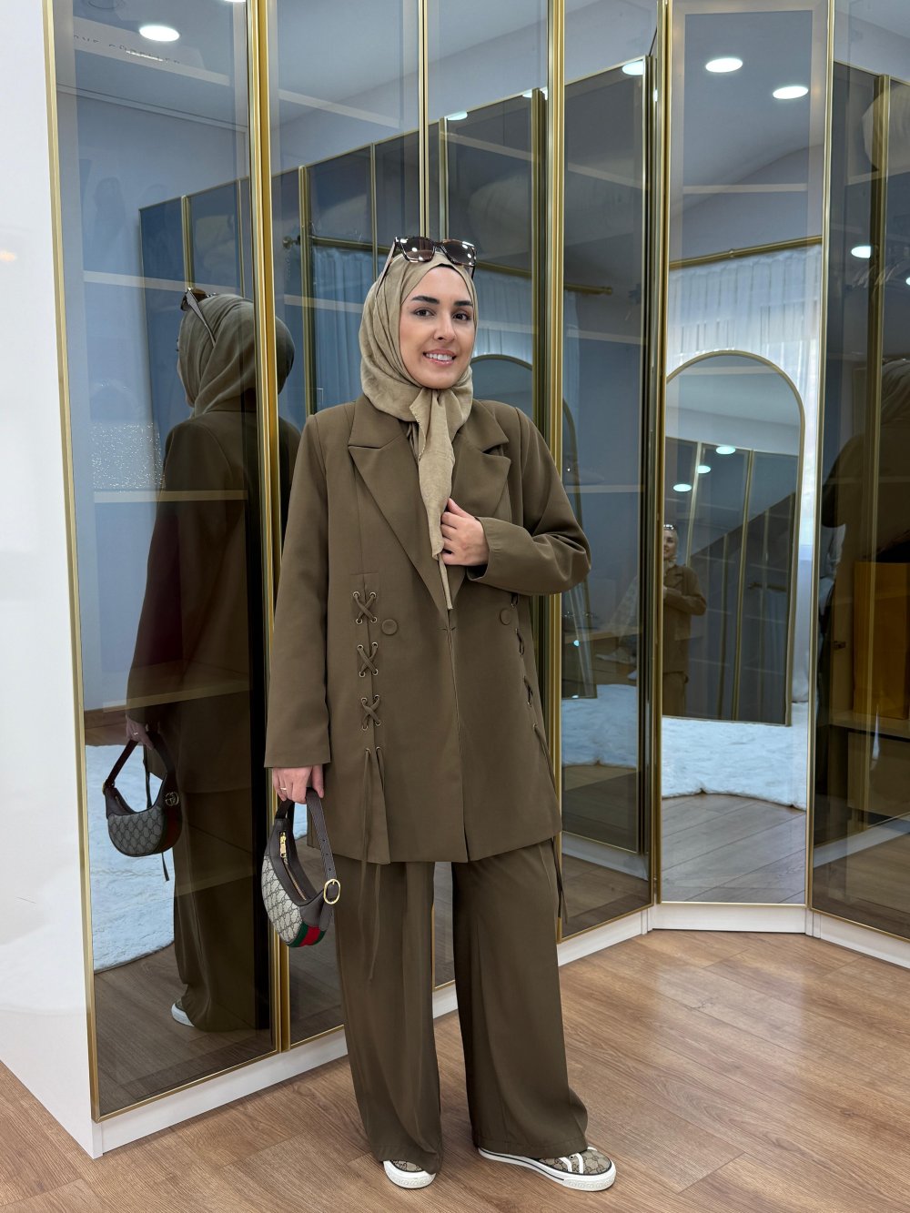 Bağcık Detaylı Ceket Takım Haki
