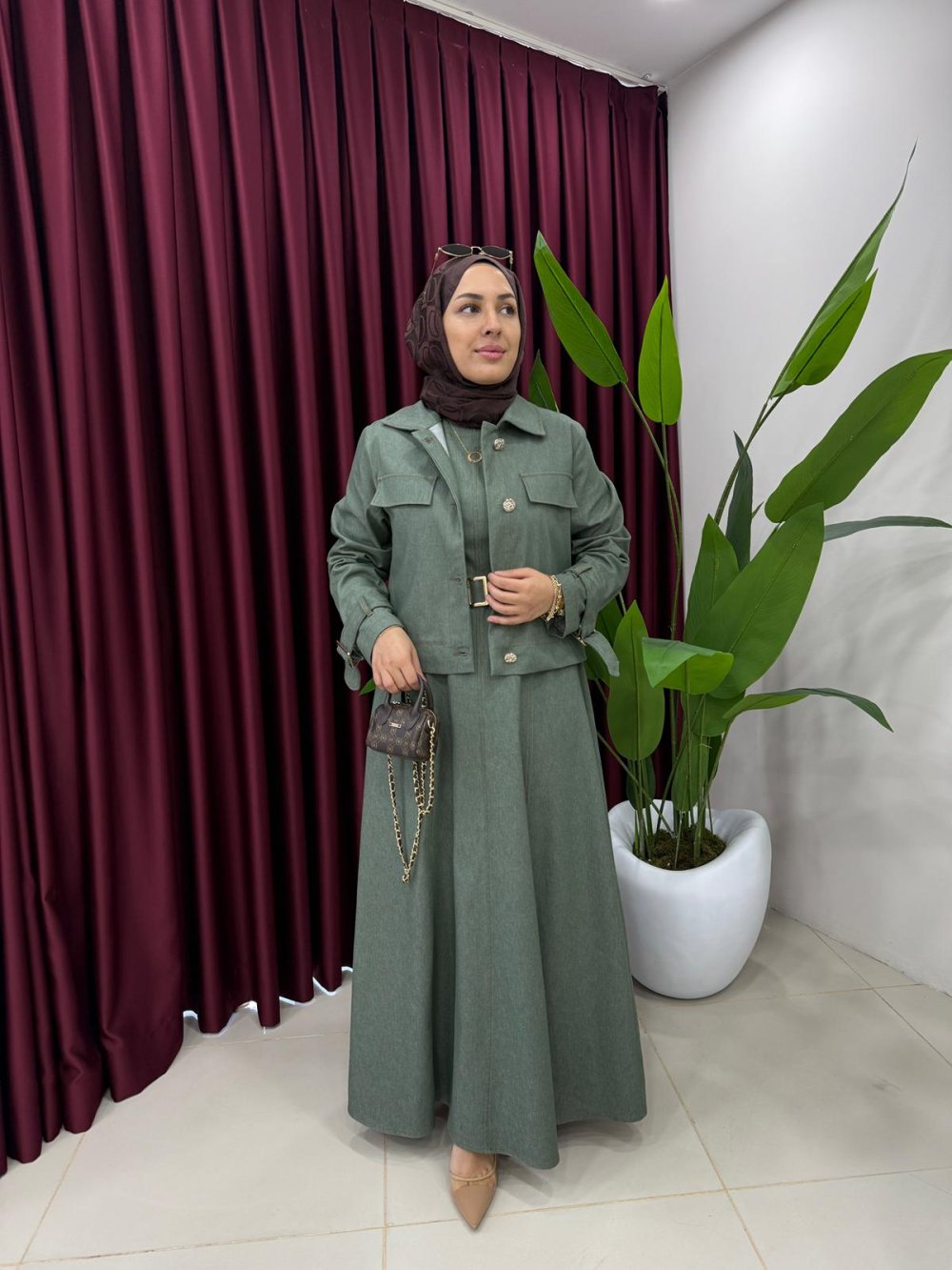 Ceketli Kot Elbise Haki
