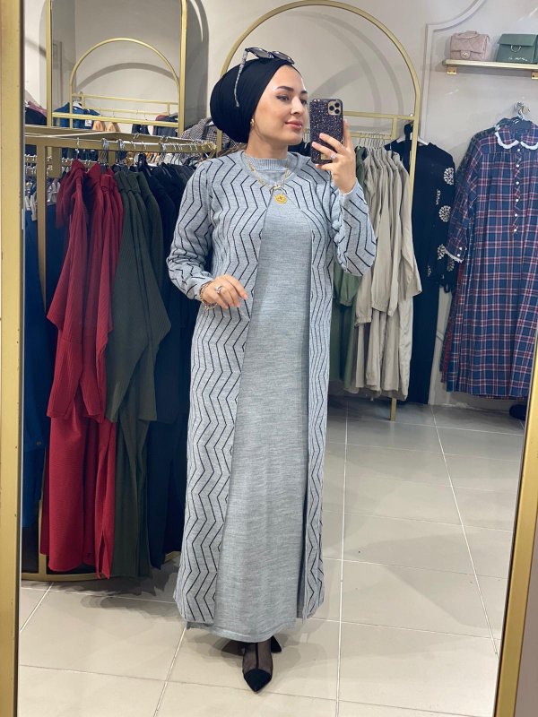 Elbiseli triko takım Gri