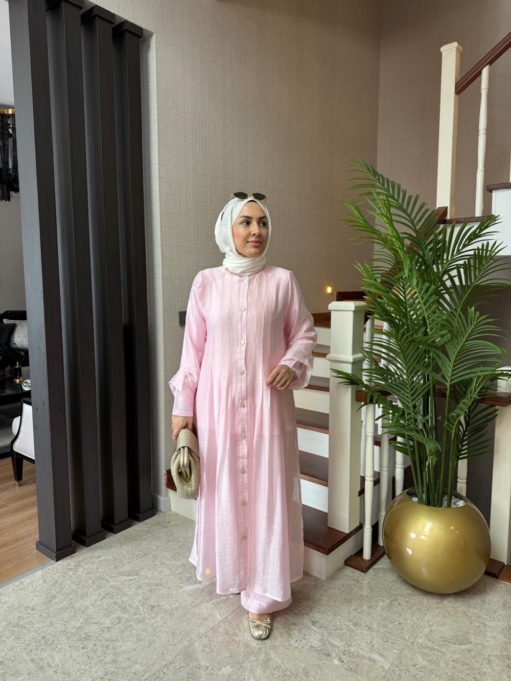 Tunik boy 125 cm’dir. Önü nervürlüdür, sedef düğme detaylıdır.