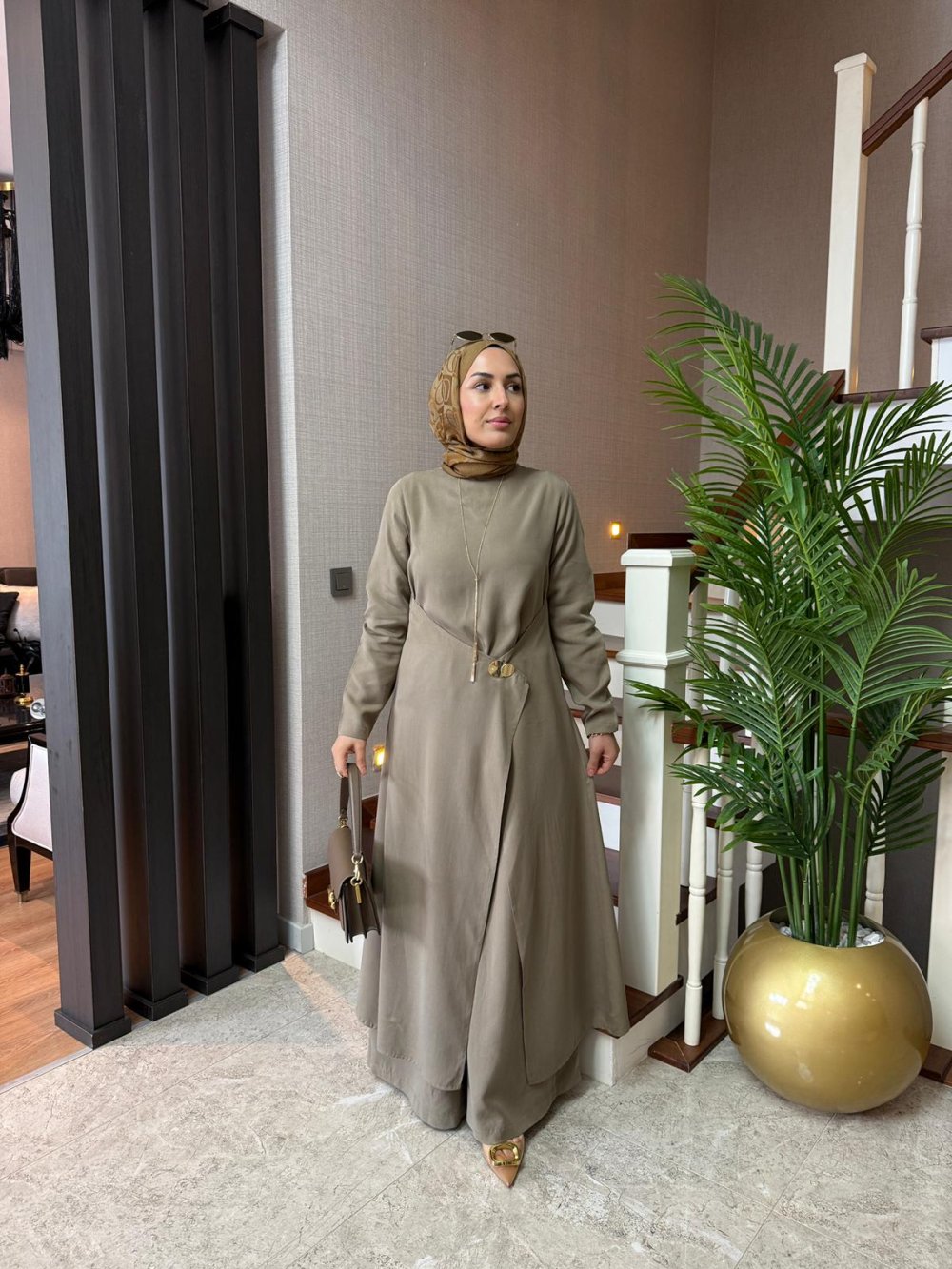 Tunik ön boy 52 cm, arka boy 120 cm’dir. Tuniğin yanında kapakları mevcuttur, broşuyla önden kapatılmaktadır.