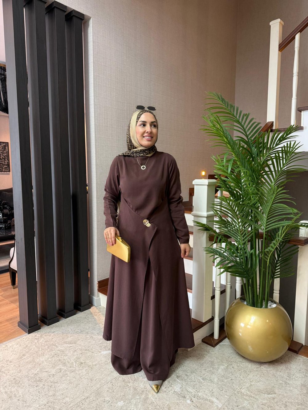 Tunik ön boy 52 cm, arka boy 120 cm’dir. Tuniğin yanında kapakları mevcuttur, broşuyla önden kapatılmaktadır.