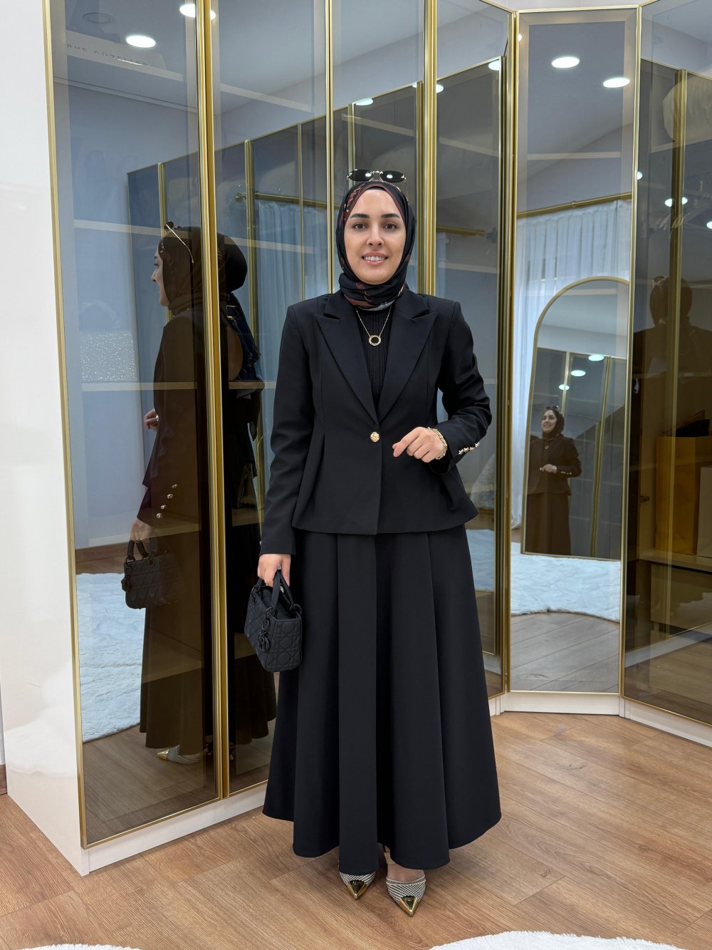Ön ve kol uçlarında metal gold düğmeleri bulunmaktadır.