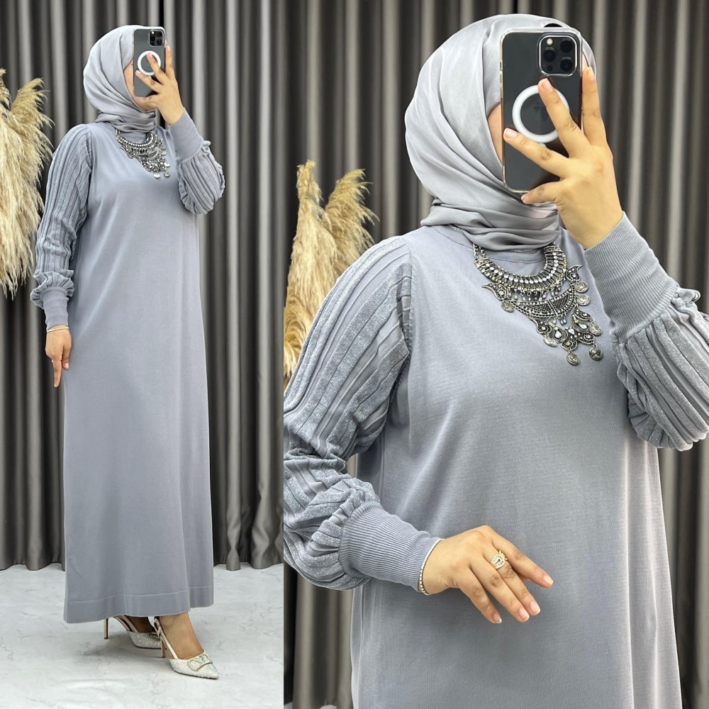 Sarmaşık Elbise Gri Gri