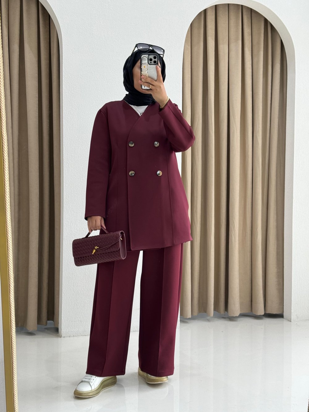 Scuba Ceketli Takım Bordo