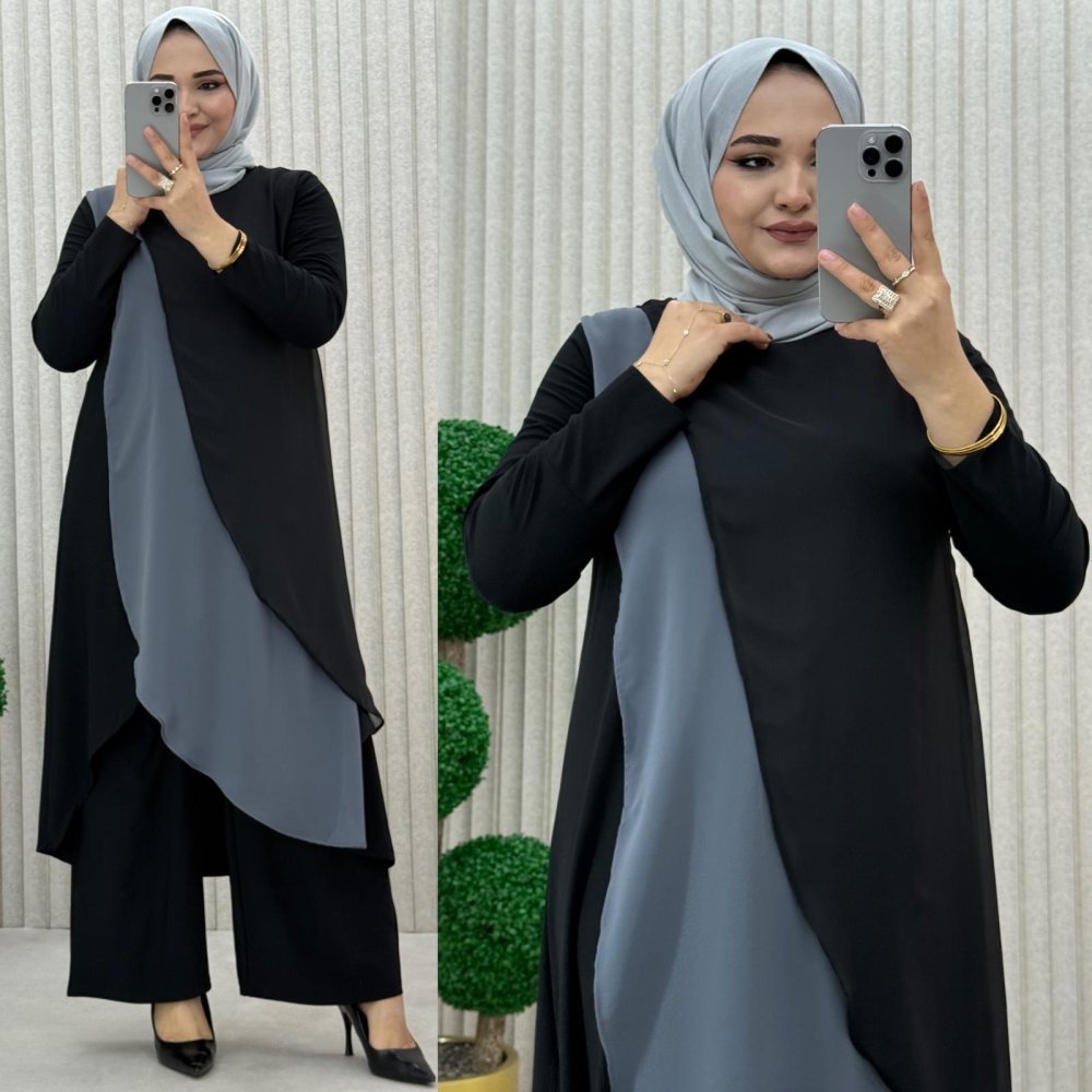Sündüs Takım Gri Siyah