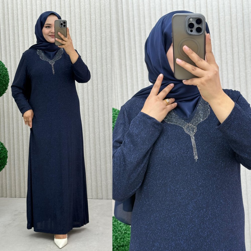 Süslü Elbise Lacivert