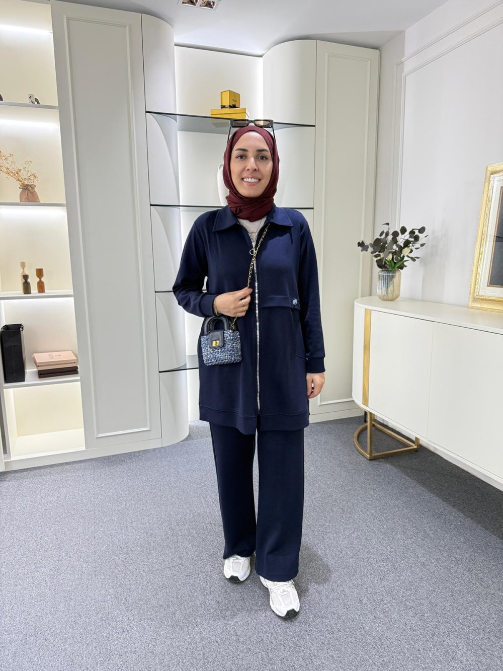 Tunik boy 85 cm’dir. Önünde metal dişli fermuarı ve yanlarda cepleri mevcuttur.