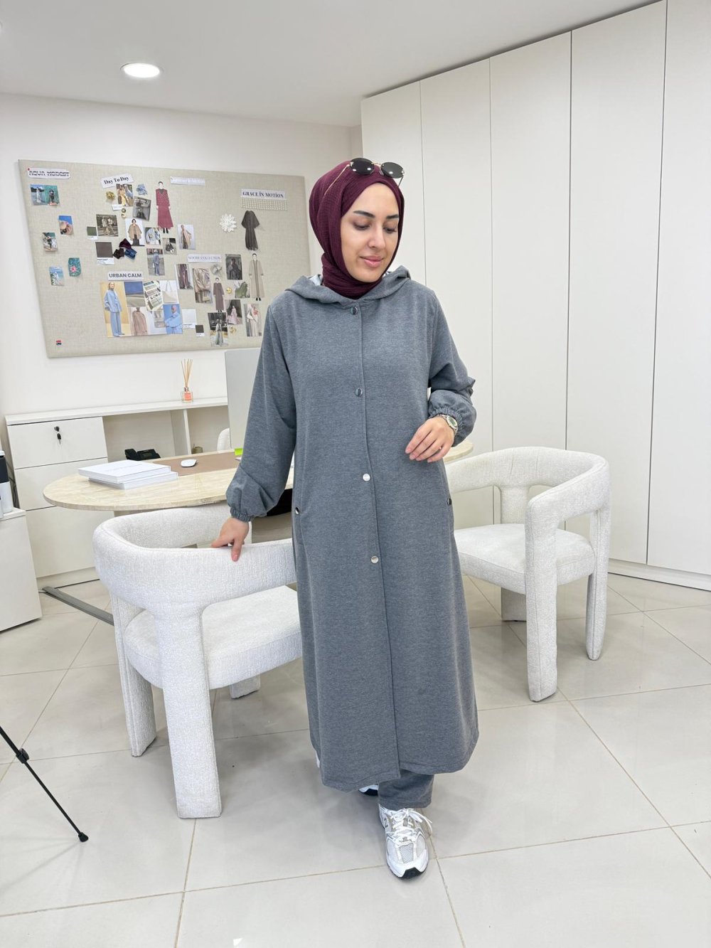 Uzun Kapüşonlu İkiiplik Takım Antrasit