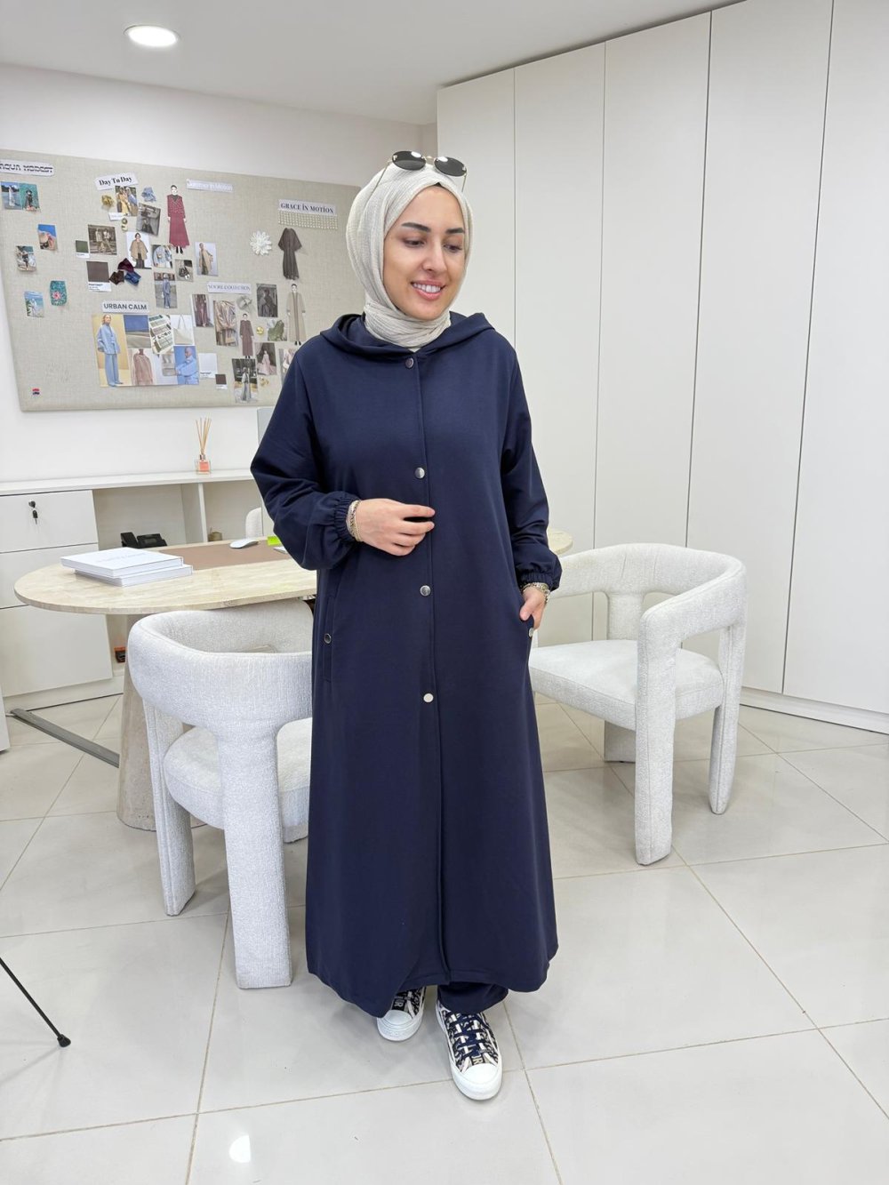 Uzun Kapüşonlu İkiiplik Takım Lacivert