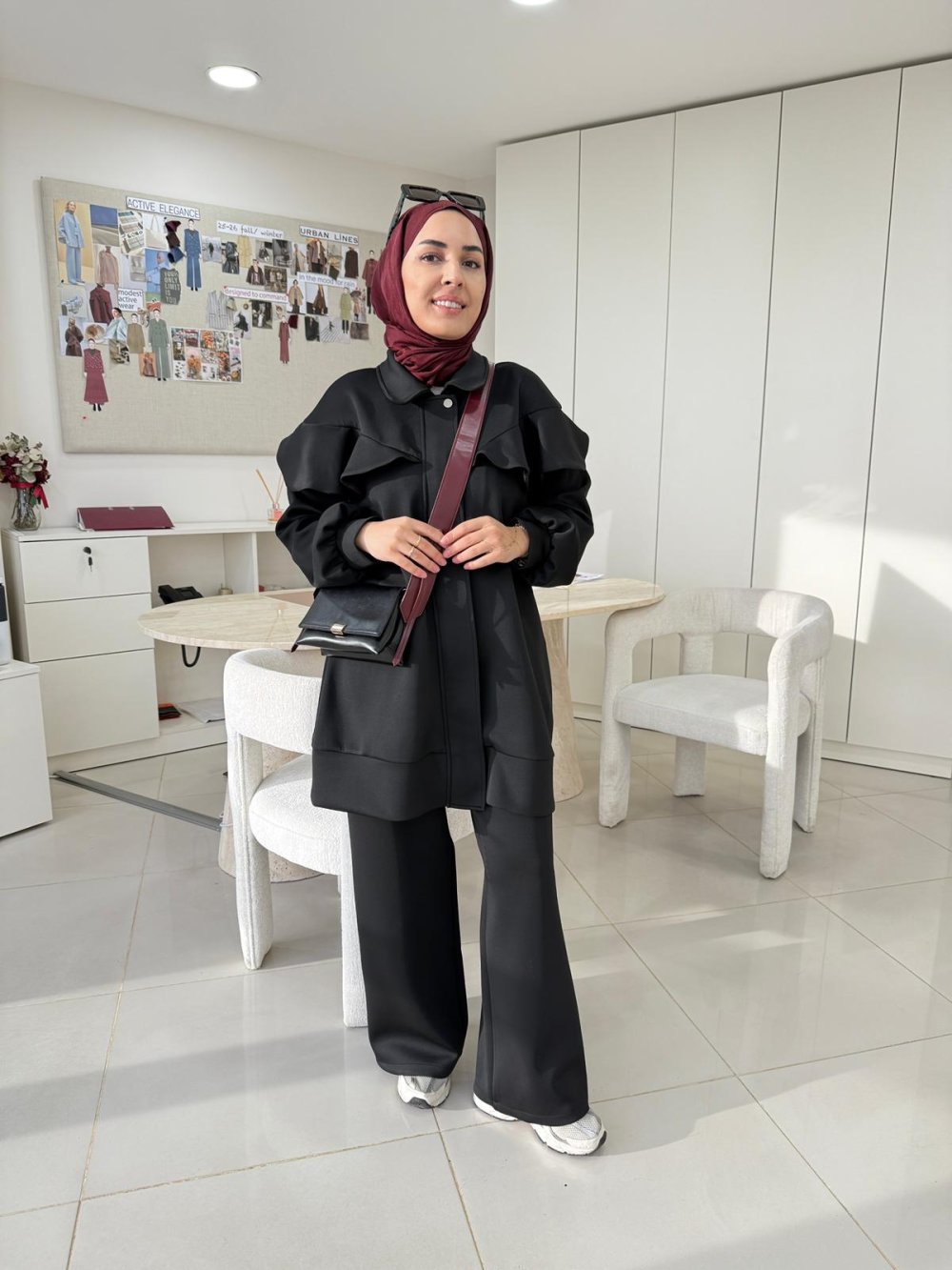 Tunik boy 85 cm’dir. Önden fermuarlı ve çıtçıt detayı mevcuttur.