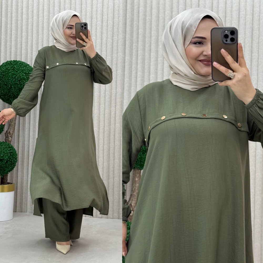 ?2 beden  göğüs 57 cm Tunik Basen 70 cm Pazu 20 cm Pantolon Bel açık 47 cm