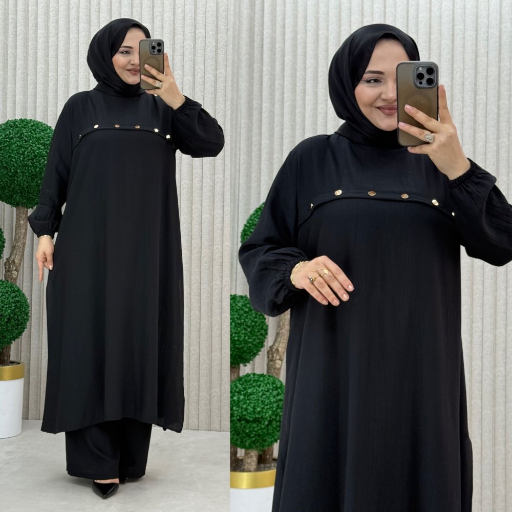 ?2 beden  göğüs 57 cm Tunik Basen 70 cm Pazu 20 cm Pantolon Bel açık 47 cm